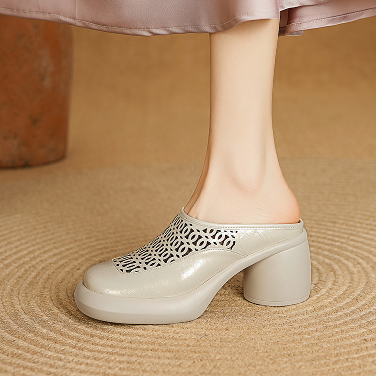后空凉鞋 高跟粗跟浅口鞋