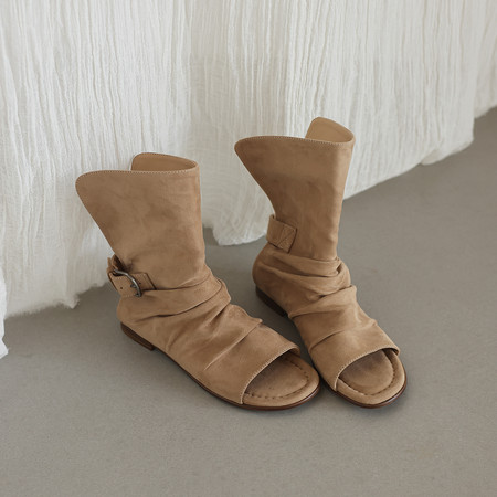 2026春季新款低跟平底皮带扣方头一脚蹬胎牛皮单鞋
