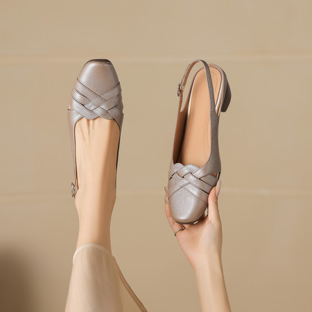 2026春季新款低跟平底方头一脚蹬胎牛皮单鞋