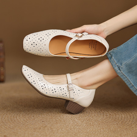 坡跟单鞋小尖头法式气质一字带浅口百搭低跟晚风玛丽珍鞋女