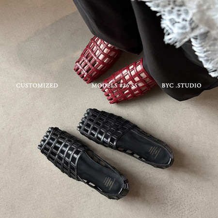 法式仙女绸缎花朵晚风中跟粗跟方头包头鞋后空绊带单鞋女